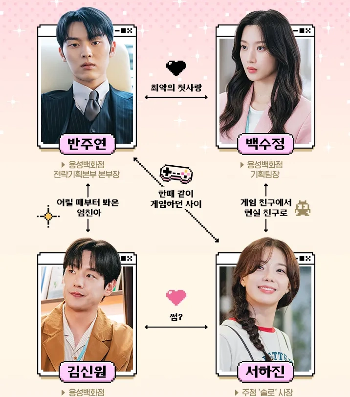 그놈은 흑염룡 웹툰 줄거리는 어릴 적 온라인 게임에서 만나 최악의 인연으로 남은 두 사람이 직장에서 다시 만나게 되면서 시작되는 이야기입니다. 살짝 미리 그놈은 흑염룡 웹툰 결말을 스포하면 백수정 (배우 문가영)과 반주연 (배우 최현욱) 커플은 해피엔딩으로 끝이 납니다.