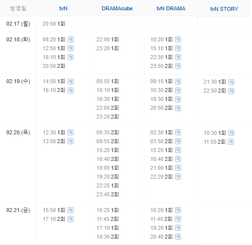 재방송 편성 채널 tvN,.드라마큐브, tvN 드라마, tvN 스토리