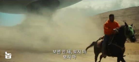 UFO의 정체는 영화에서 직접 보시길 바랍니다. 놉이 재미없다고 느끼시는 분은 SF영화라고 생각하고 알고 보면 '엥, 이게 뭔 소리야'라고 할 수밖에 없는 영화입니다. 영화 놉은 UFO(사실은 외계인이 아닙니다)로 표현했지만 공권력에 대한 암시를 표현한 것입니다.